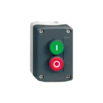 Caja completa botón 22mm 1 rasante rojo 1 rasante verde 1 NA 1 NC, texto I-0